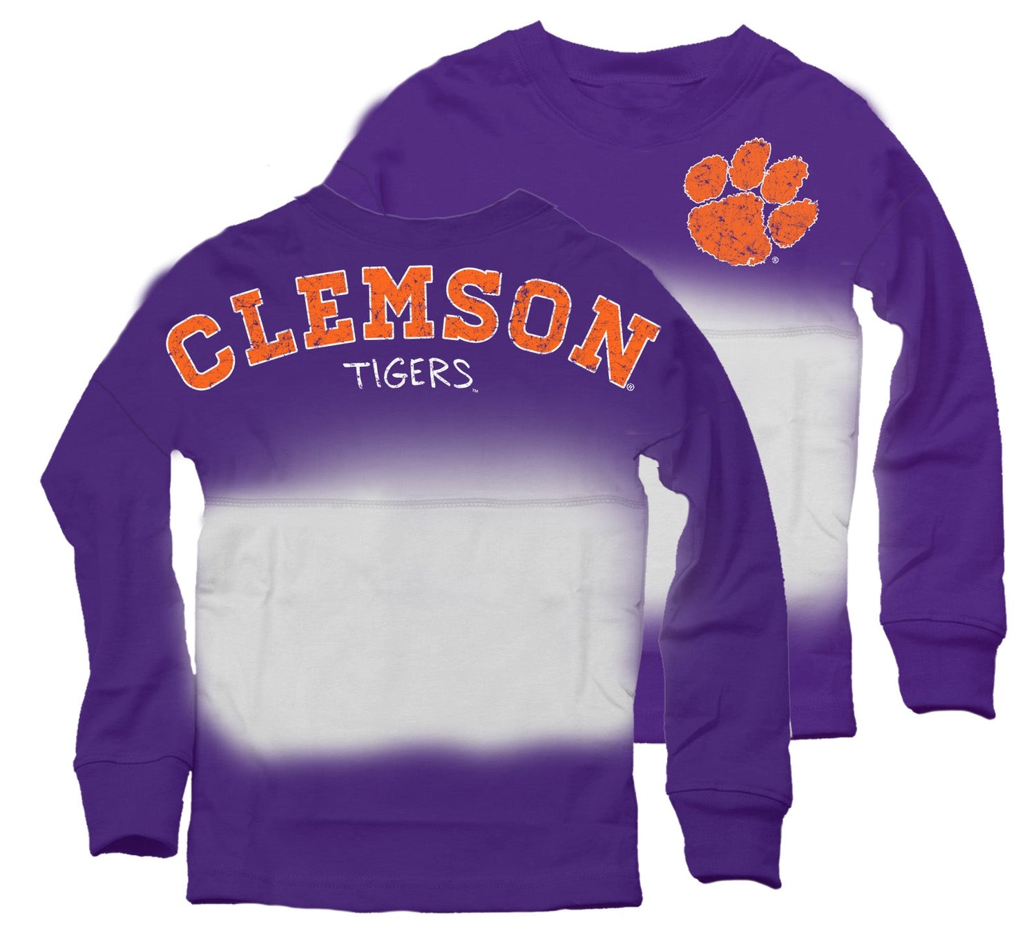 Stand out in the crowd with this awesome Dip Dyed Spirit Top. Go Clemson!!